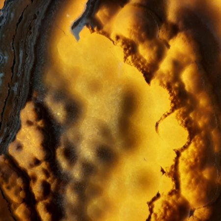 Pela natureza mineral trata-se de um mármore criptocristalino, calcítico e aragonítico, precipitado em ambiente termal, pouco profundo e juvenil, com idade concomitante aos primeiros vestígios do Homem. Porque cristalizou em ambiente livre, e por ter sido pouco afetados pela pressão e pela temperatura, exibe propriedades óticas de excecional translucidez, as quais permitem aplicações de retroiluminação. As cores estão relacionadas com elementos cromóforos, como os óxidos de ferro, presentes no ambiente de formação, que não alteram a estrutura mineral, mas ampliam muito o espectro de cores e graduam os tons mais intensos e exuberantes. A textura é bandada e levemente concêntrica, com ritmos mais ou menos uniformes. Apresenta ainda uma fracturação natural, com padrões surpreendentes, revelados pela retroiluminação.